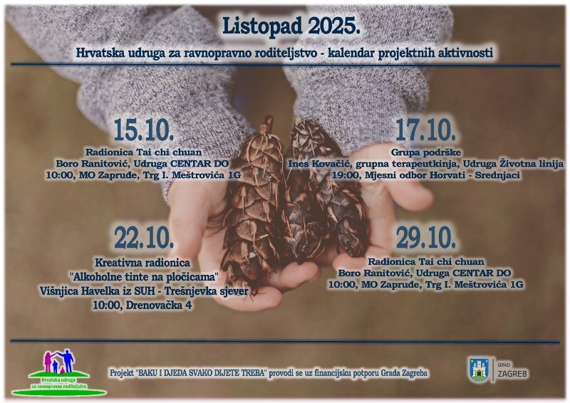 Projekt se provodi od 1.10.2025. do 31.12.2025. godine uz potporu Grada Zagreba. Uključuje savjetodavnu pomoć, grupe podrške, kreativne radionice i radionice tai chi chuana, a sudjelovanje je besplatno.