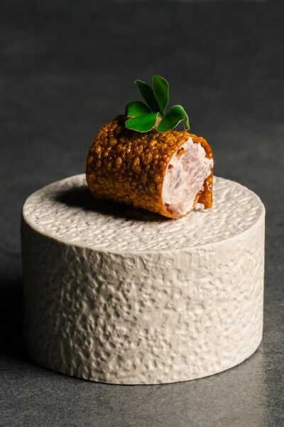Dry-aged riba s mladim zimskim kupusom, consommé od pečene paprike i prženi pesto od začinskog bilja tek su uvod u jelovnik koji slavi jesen dok jadranska kozica s bučom i mandarinama samo nastavlja tu odu sezonalnosti. Pod nazivom „More i planine“, Bruno spaja nespojivo – prepelicu s roštilja s rezancima od sipe uz bogati jus. Takvim tanjurom poentira, a završnim slijedom u kojem glavnu riječ vode odojak i gorka naranča priprema goste na jako zanimljive deserte.
