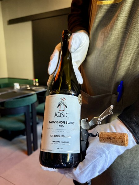 „Trudimo se, puno se trudimo. Nismo klasičan slavonski restoran u koji se svrati i ne razmišlja što će se naručiti. Karta nam je mala, ali probrana i mislim da nam je usluga stvarno na nivou. Bez toga nemamo nikakve šanse, a ja stvarno želim da ova priča zaživi.“ nastavlja Kunce dok pijemo aperitiv, rakiju od kruške Lady iz Vinkovaca. Kvalitetnu ponudu rakija i likera nastavljaju također slavonskim Planinkovcem, a od vina ističu dva pjenušca i šampanjca, dok su perjanice klasične nedaleke vinarije Kutjevo, Martin Albus i Josić. Ugodno nas je iznenadio kućni ledeni sok od marakuje, a onda je krenula i hrana.