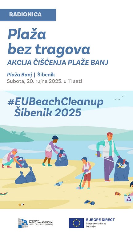 U subotu, 20. rujna 2025., Šibenik će postati dio velike europske obitelji gradova koji istoga dana šalju snažnu poruku – more bez plastike, plaže bez opušaka i čiste obale odgovornost su svih nas. Na gradskoj plaži Banj, s početkom u 11 sati, održat će se događanje EU Beach Cleanup Šibenik 2025., u organizaciji EUROPE DIRECT centra Šibensko-kninske županije.