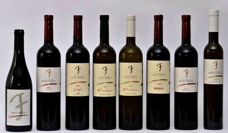 Slijedile su 22., 23., 24., i 2025. U toj posljednjoj 2025. na Decanteru je osvojio zlato. Sve su ovo brojke koje ne mogu dovoljno dobro iskazati svu puninu i vrijednosti njegovih vina koja smo imali priliku kušati. Tipičnu sortnu malvaziju, elegantni terroirski teran, odličan Cuvée i zavodljivi muškat žuti. Ferenac nema puno sorti, ali ono što proizvede je vrlo dobro napravljeno. Na 4.5 hektara danas, obnavljao je i nadopunjavao trsove i sortiment počevši od 1983., ima oko 16.000 loza (11.000 malvazije, 2.000 terana, 1.500 merlota, 800 cabernet sauvignona i oko 700 loza muškata žutog).